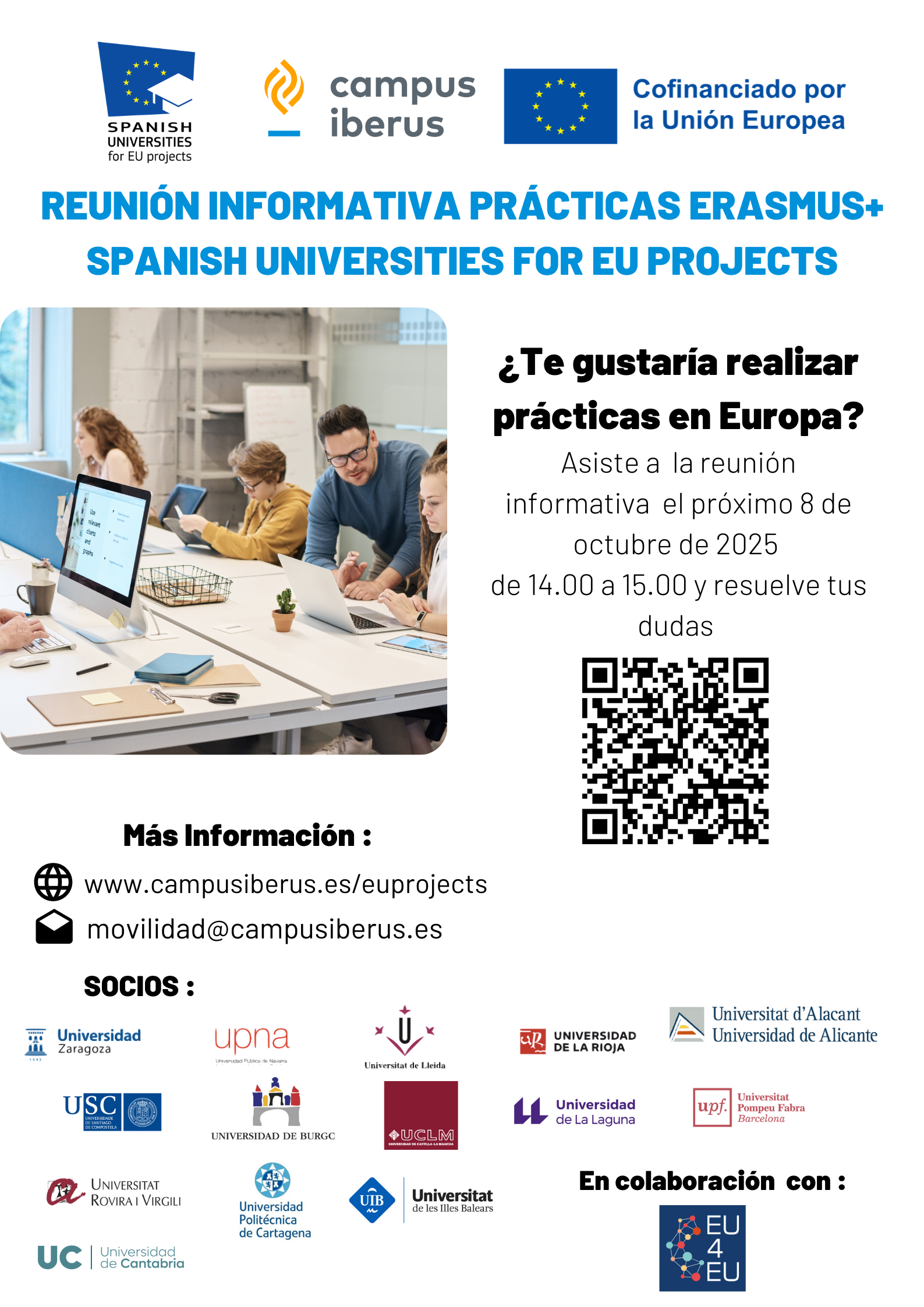 La UIB participa en el projecte Spanish Universities for EU Projects. Això ens permet oferir una plataforma amb institucions i empreses molt diverses perquè qualsevol estudiant (de qualsevol branca) pugui fer un període de pràctiques a l'estranger.